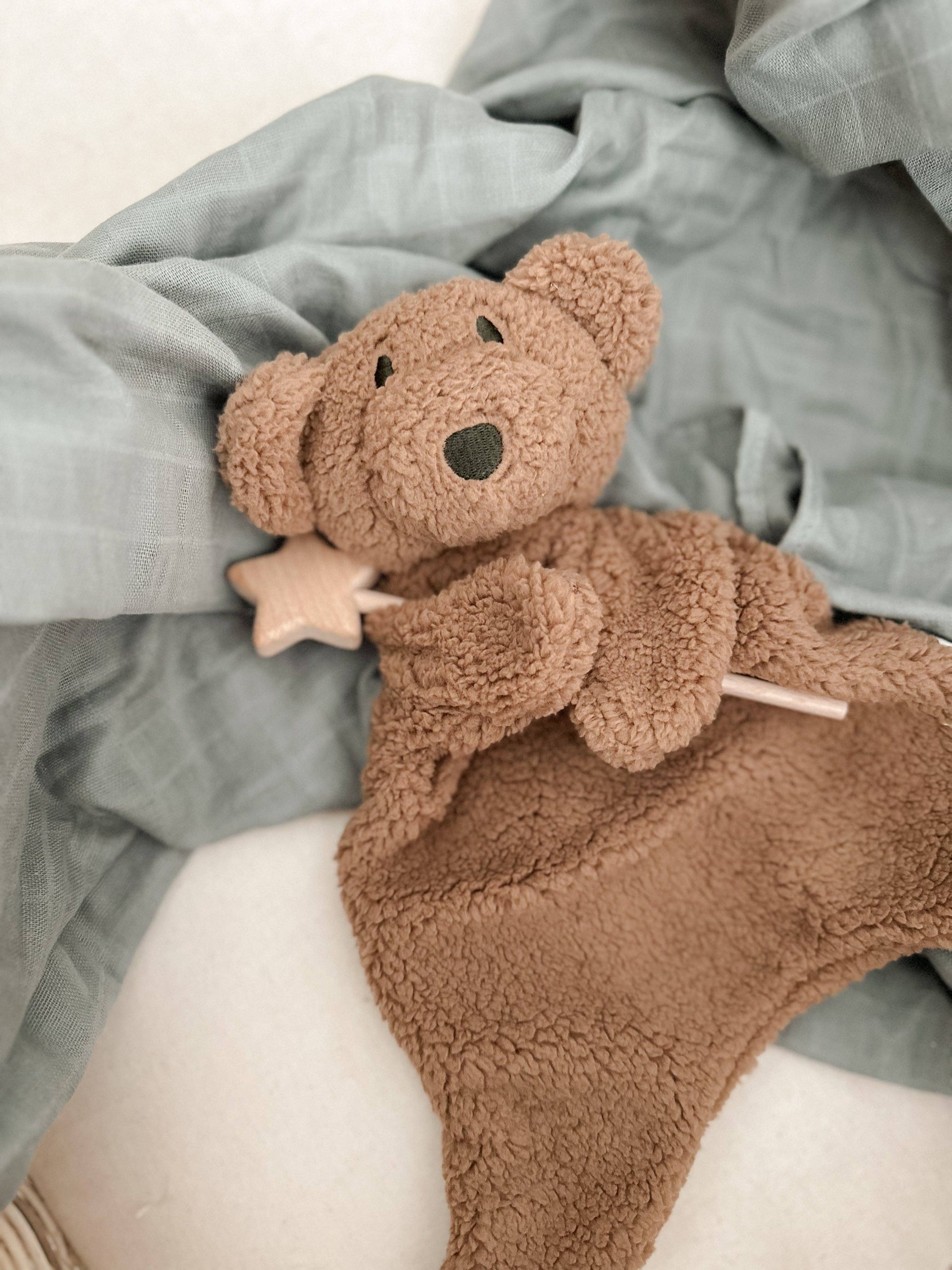 Little Teddy is ready to be your newborns best-friend. He can snuggle with them each night, and hold on to their dummy as well!