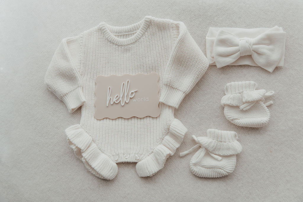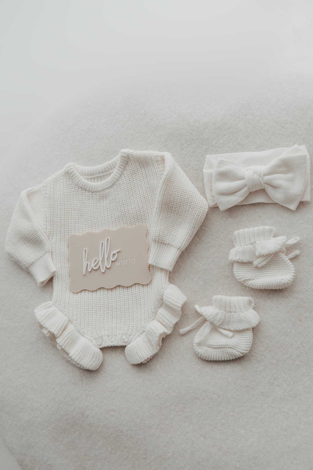 Our soft cotton knit heirloom rompers are a great way to introduce Bub to the World. Or, to use in their fresh newborn photos. A classic, timeless knit made of soft cotton to keep Bub cosy and cute.