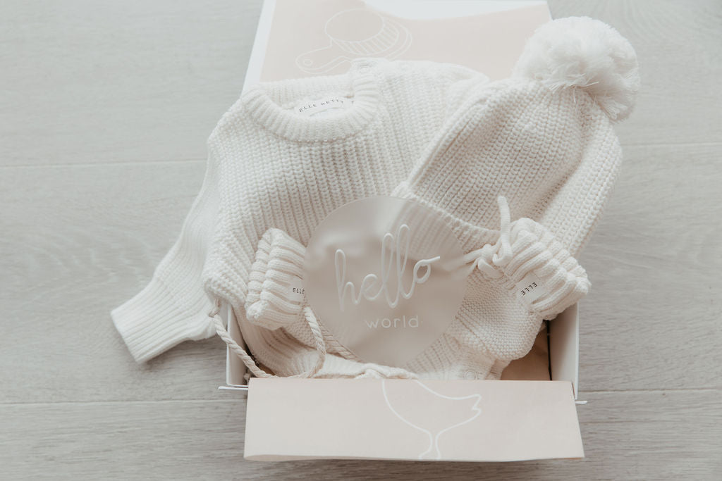 Complete the look with one of our knit rompers and booties. A cute way to introduce your new little love to the world and keep them cosy.