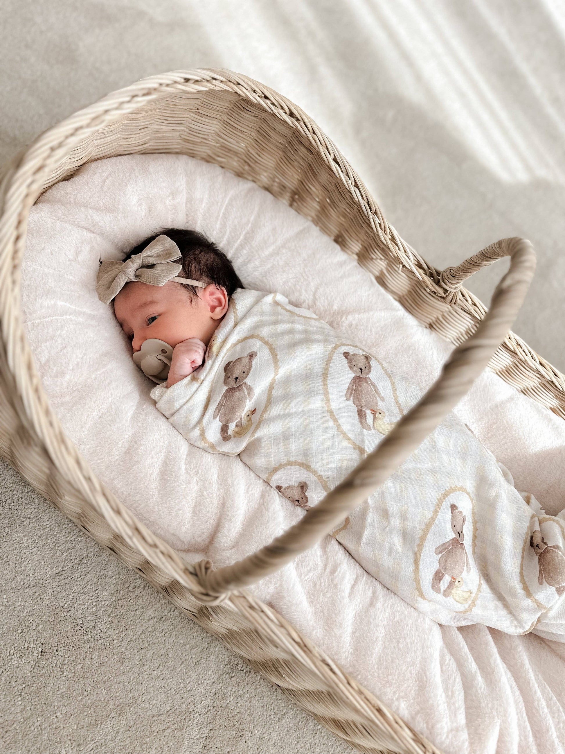 Welcome your little one to the world with our Ted & Duck Swaddle. Featuring your newest best-friends, Ted and Duck.