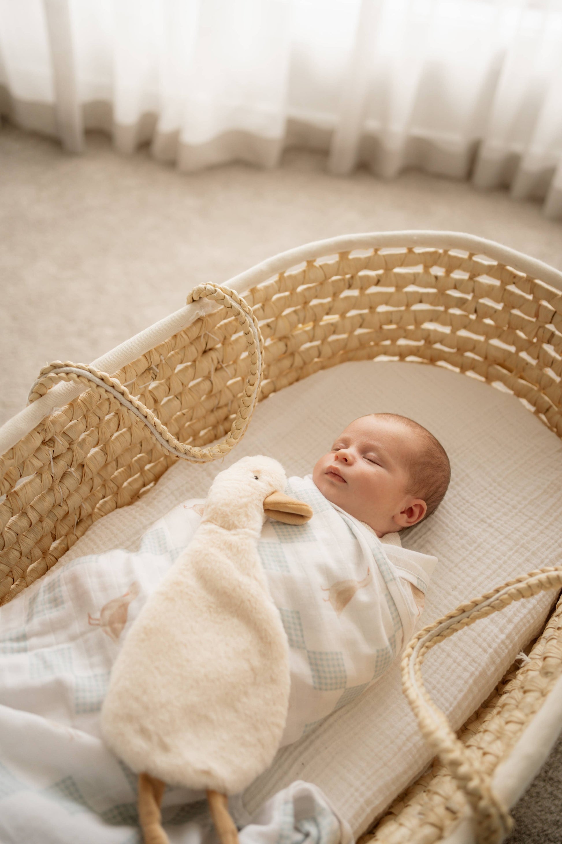 Waddles is ready to become your newborn’s closest companion. This soft and cuddly friend will keep them company at bedtime while securely holding onto their dummy with his little tootsie!